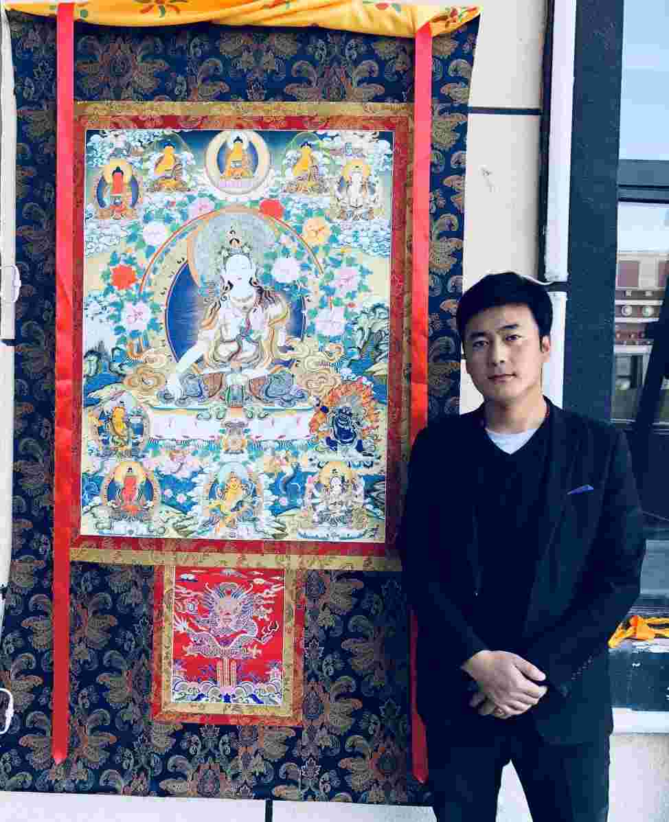他一直认为画唐卡不仅需要高超的技法,还要学到佛教文化及唐卡理论知识,更需要的是有一颗纯净的向佛之心,这样才能传承并发扬祖辈们留下的传统文化,从那时起他各地拜宁玛派大圆满活佛为具德上师。活佛们的教研下深入学习(普贤上师言教)等教法,学习唐卡理论知识及佛教文化,尤其在上师的指导下,已修完五加行,几年间,他闻受了许多戒律方面的经教及宁玛派法类的引导和各种灌顶。